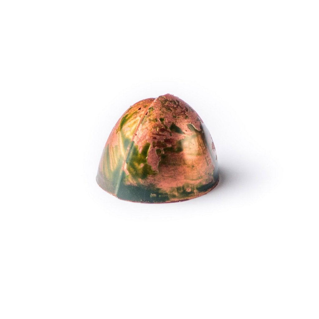PRALINKA Z HOŘKÉ ČOKOLÁDY NAPLNĚNÁ KRÉMEM Z MLÉČNÉ ČOKOLÁDY A MALIBU